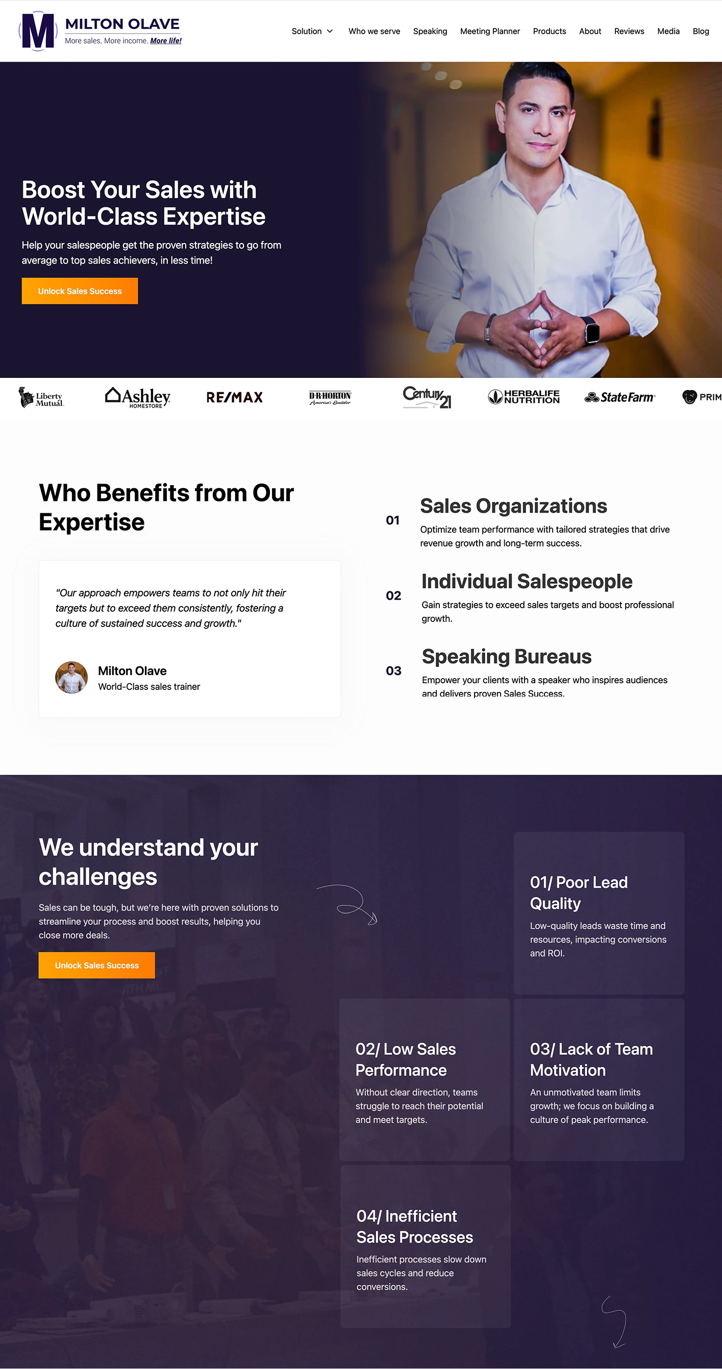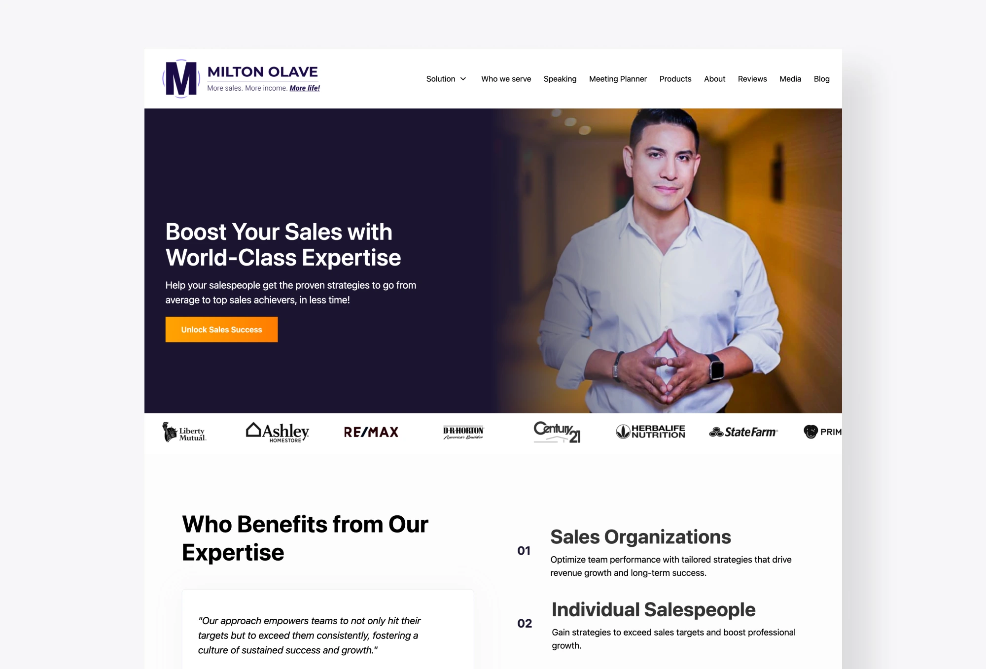 This collaboration resulted in a powerful personal brand platform that reflects Milton’s mission — inspiring individuals and organizations to perform at their highest potential.